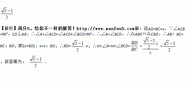 如图,Rt△ABC中,∠ACB=90°,CD⊥AB,垂足为点D,若AD=BC,则sin∠A=_____.