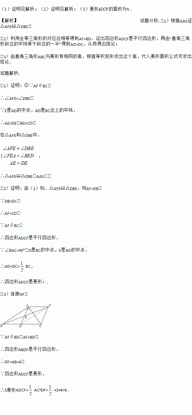 (3)若AC=3,AB=4,求菱形ADCF的面积.