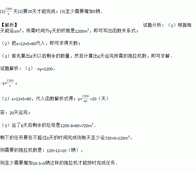 (2)若每辆拖拉机一天能运12立方米,则5辆这样的拖拉机要用多少天才能运完?