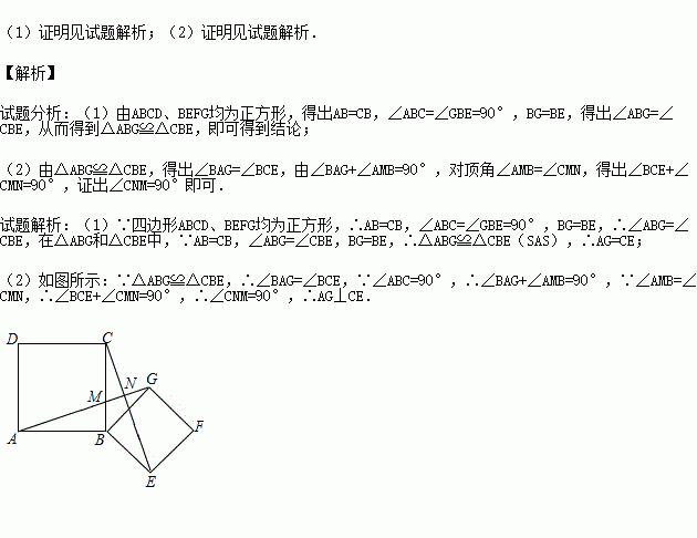 (8分)如图,四边形ABCD、BEFG均为正方形,连接AG、CE.