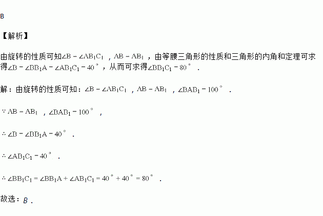 如图,将绕点A按逆时针方向旋转,得到,若点在线段BC的延长线上,则的大小为
