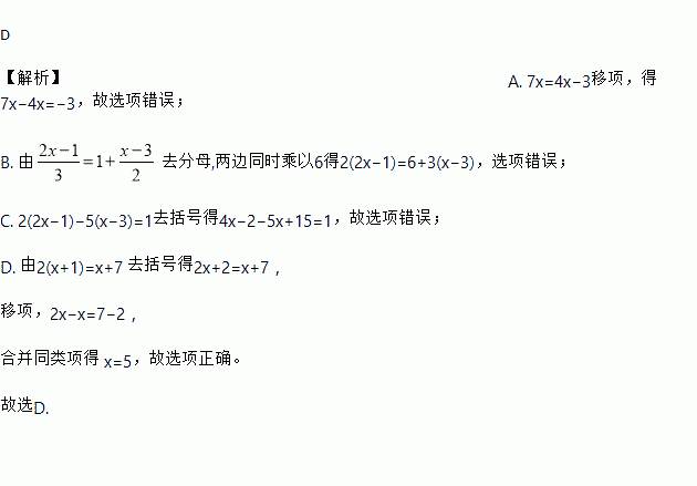 B. 由去分母得
