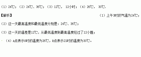(3)这一天的温差是多少?从最低温度到最高温经过了多长时间?