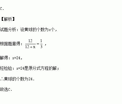 在一个不透明的盒子中装有12个白球,若干个黄球,它们除颜色不同外,其余均相同.若从中随机摸出一个球是白球的概率是,则黄球的个数为( )