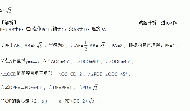 在平面直角坐标系中,⊙P的圆心是,半径为2,函数的图象被⊙P截得的弦AB的长为,则的值是________ .