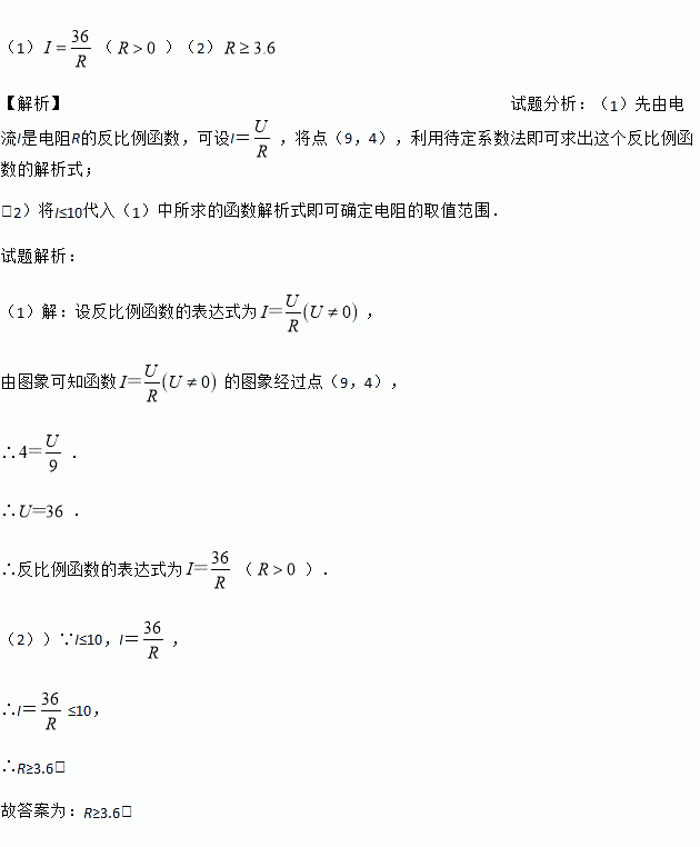 (2)如果以此蓄电池为电源的用电器的限制电流不能超过10A,那么用电器的可变电阻R应控制在什么范围?请根据图象,直接写出结果 .