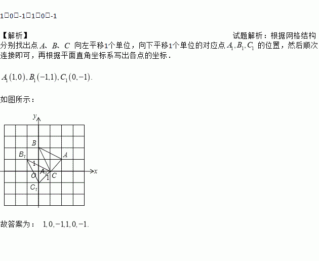 如图,若将点A,B,C的横坐标和纵坐标都加上﹣1分别得到点A1(________,________),B1(________,________),C1(________,________),在图上描出点A1 , B1 , C1并连线.