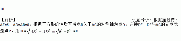 如图,在正方形ABCD中,E是AB上一点,BE=2,AE=3BE,P是AC上一动点,则PB+PE的最小值是__________.