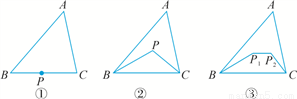 (3)将(2)中的点P变为两个点P1,P2,得图③,试观察比较四边形BP1P2C的周长与△ABC的周长的大小,并说明理由.