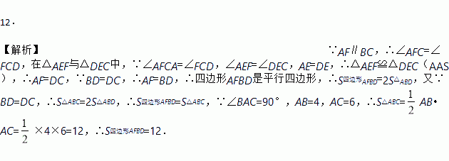 如图,在△ABC中,∠BAC=90°,AB=4,AC=6,点D、E分别是BC.AD的中点,AF∥BC交CE的延长线于F.则四边形AFBD的面积为______.