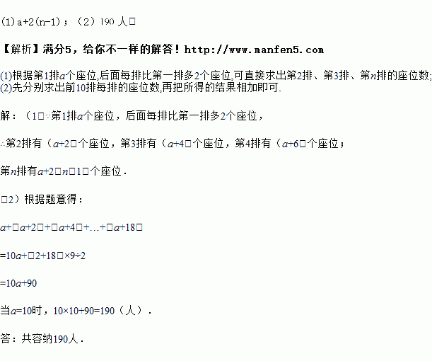 某校大礼堂第一排有个座位,后面每一排都比前一排多个座位,
