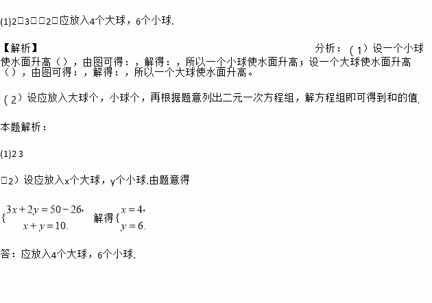 (2)如果要使水面上升到50 cm,应放入大球、小球各多少个?