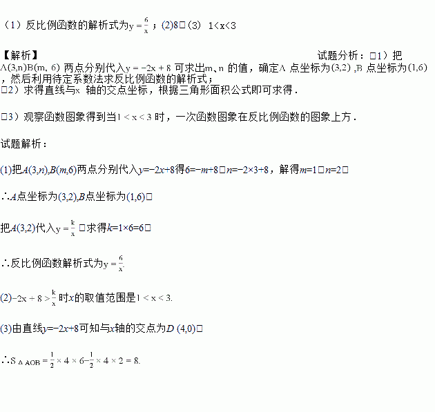 (x>0)的图象交于A(3,n),B(m,6)两点.