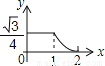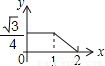 如图,边长分别为1和2的两个等边三角形,开始它们在左边重合,大三角形固定不动,然后把小三角形自左向右平移直至移出大三角形外停止.设小三角形移动的距离为x,两个三角形重叠面积为y,则y关于x的函数图象是( )