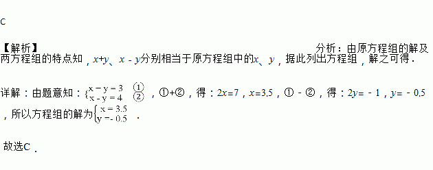 关于x,y 的方程组(其中a,b是常数)的解为,则方程组的解为( )