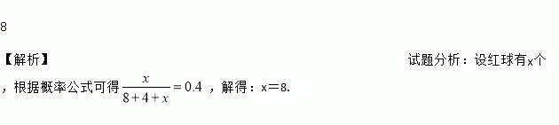 一个不透明的袋中装有除颜色外均相同的8个黑球、4个白球和若干个红球.每次摇匀后随机摸出一个球,记下颜色后再放回袋中,通过大量重复摸球试验后,发现摸到红球的频率稳定于0.4,由此可估计袋中约有红球_____个.