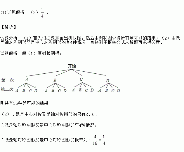 (1)用树状图(或列表法)表示两次摸牌所有可能出现的结果(纸牌可用A、B、C、D表示);