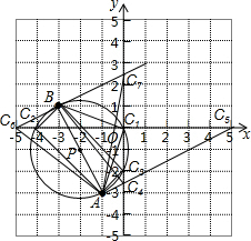 分析 首先画出坐标系,然后再确定A、B、P的位置,以P为圆心,AB为直径画圆,与坐标轴有3个交点,再以B为直角顶点AB为直角边,可确定2个C点位置,再以A为直角顶点,AB为直角边,可确定2个C点位置,共确定7个C的位置.