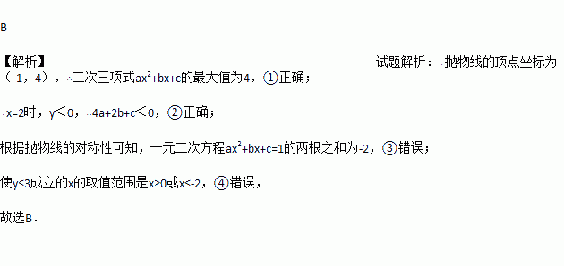 ①二次三项式ax2+bx+c的最大值为4;
