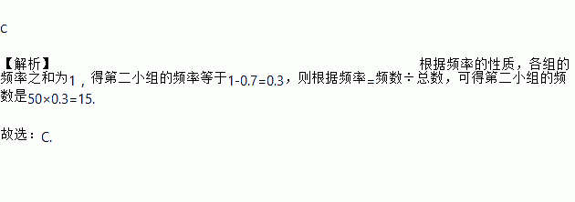 将50个数据分成3组,其中第一组和第三组的频率之和为0.7,则第二小组的频数是( )