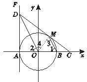 如图,在平面直角坐标系xOy中,⊙O交x轴于A、B两点,直线FA⊥x轴于点A,点D在FA上,且DO平行⊙O的弦MB,连DM并延长交x轴于点C.