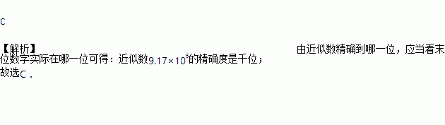 G20峰会期间,杭州市的注册志愿者达到9.17×105人,则近似数9.17×105的精确度是 ( )