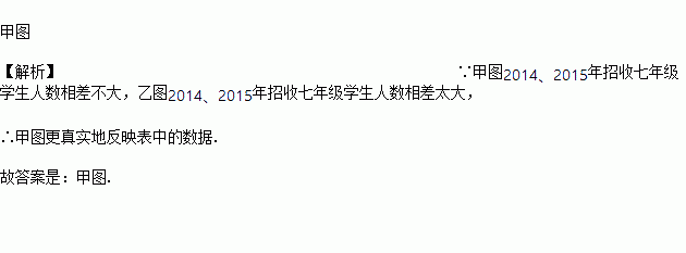 依据某中学2014、2015年招收的七年级新生统计表,我们可以制成下面两张统计图(如下图所示),你认为________能更真实地反映表中的数据.