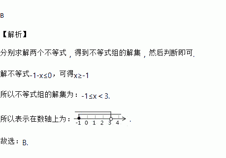 不等式组中两个不等式的解集,在数轴上表示正确的是( )
