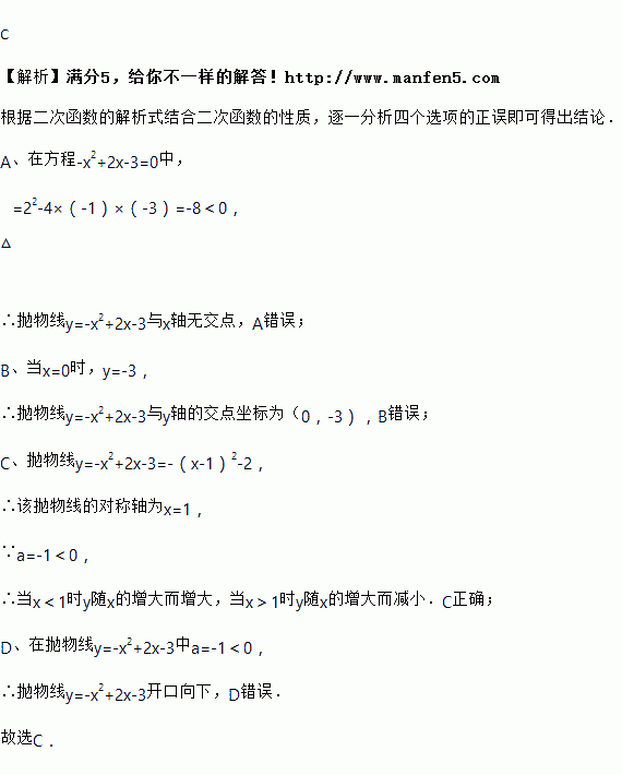 对抛物线y=﹣x2+2x﹣3而言,下列结论正确的是( )