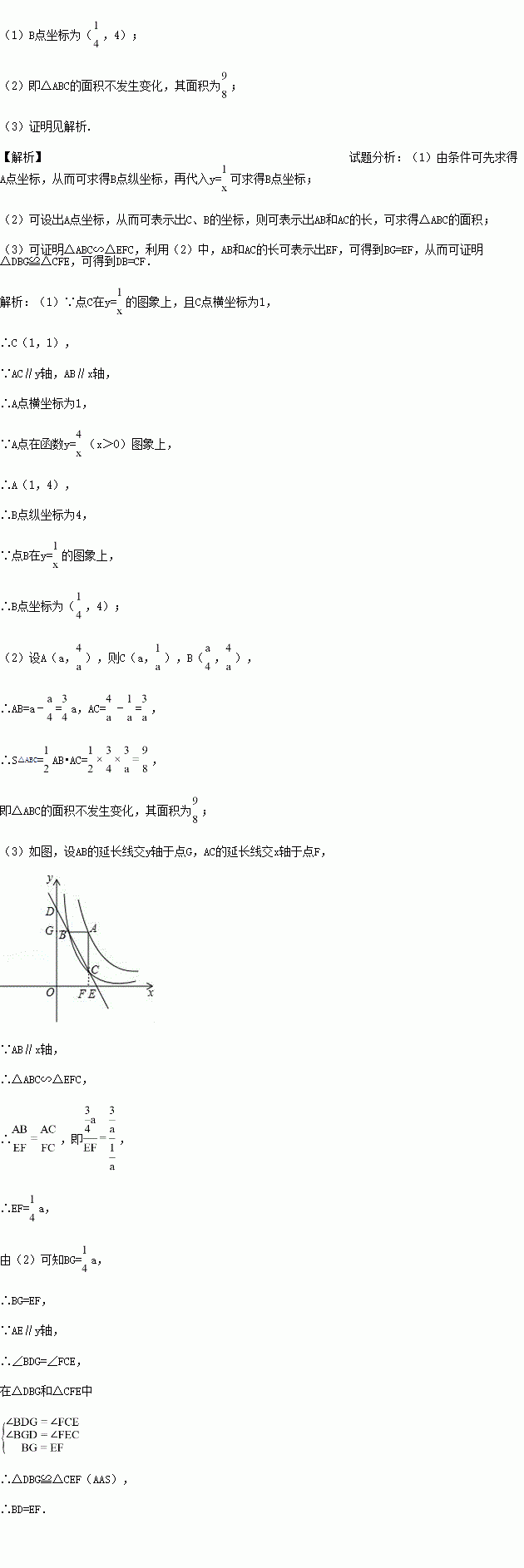 (x>0)图象上运动时,线段BD与CE的长始终相等.