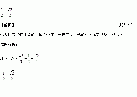 计算: tan30°-cos60°+sin45°。
