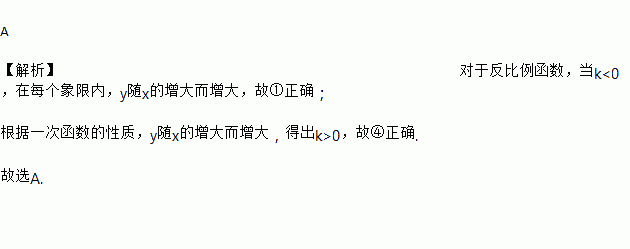 若m<-1,有下列函数:①(x>0);②y=-mx+1;③y=mx;④y=(m+1)x.其中y随x的增大而增大的是 ( )