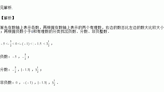 把下列各数表示的点画在数轴上,并用“”把这些数连接起来,然后指出哪些是负数、哪些是分数、哪些是非负整数.,,,,,