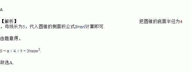 若一个底面半径为4cm,母线长为5cm的圆锥,则它的侧面展开图的面积是( )