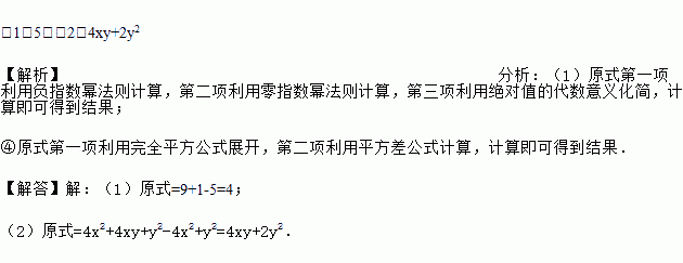 计算下列各式:(1);(2)(2x+y)2-(2x+y)(2x-y)