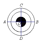 如图,AB、CD是同心圆中半径最大的圆的直径,且AB⊥CD于点O,若AB=4,则图中阴影部分的面积等于