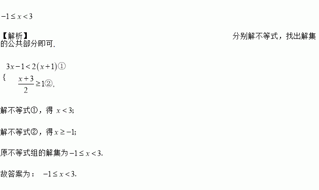 不等式组的解集为_________.