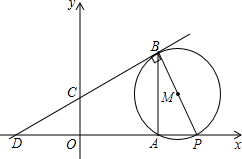 .分析:作出图形,根据直线的解析式求出点B的坐标,直线与x的交点D的坐标,从而得到AD与AB的长度,再根据⊙M与直线BC相切可得PB⊥BC,然后求出△ABD与△APB相似,根据相似三角形对应边成比例列式求出AP的长度,即可得到点P的坐标.