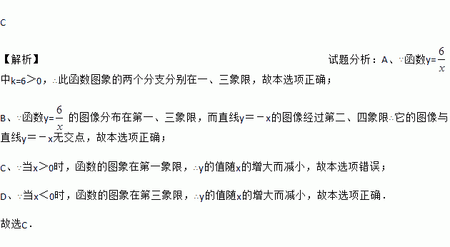 A. 它的图象分布在第一、三象限 B. 它的图象是中心对称图形