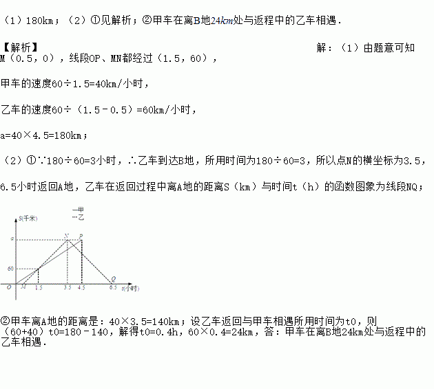 ①在图中画出乙车在返回过程中离A地的距离S(km)与时间t(h)的函数图象;②请问甲车在离B地多远处与返程中的乙车相遇?