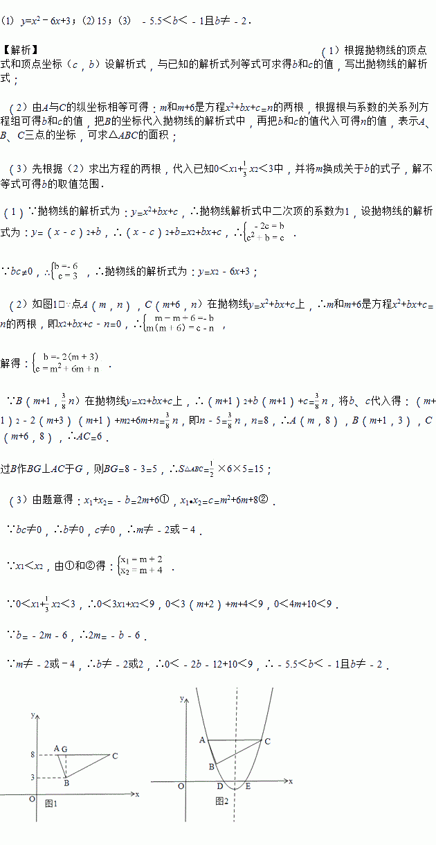 n),C(m+6,n)在抛物线y=x2+bx+c上,求△ABC的面积;