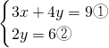 把y=3代入①得3x+4×3=9,