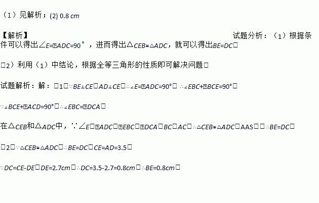 (2) 若AD=3.5 cm,DE=2.7 cm,求BE的长