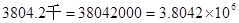 某省2010年末森林面积为3804.2千公顷,用科学记数法表示3804.2千正确的是( )