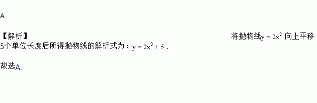 A 【解析】将抛物线向上平移5个单位长度后所得抛物线的解析式为:. 故选A.