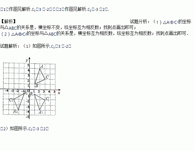 (2)作出△ABC关于y轴对称的△A2B2C2,并写出点C2的坐标.