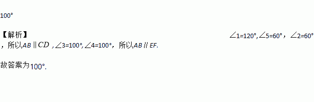 如图,∠1=120°,∠2=60°,∠3=100°,则∠4=_________时,AB∥EF.