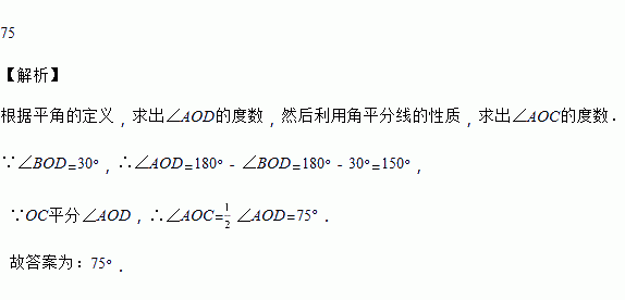 如下图所示,点O是直线AB上的点,OC平分∠AOD,∠BOD=30°,∠AOC=____°.