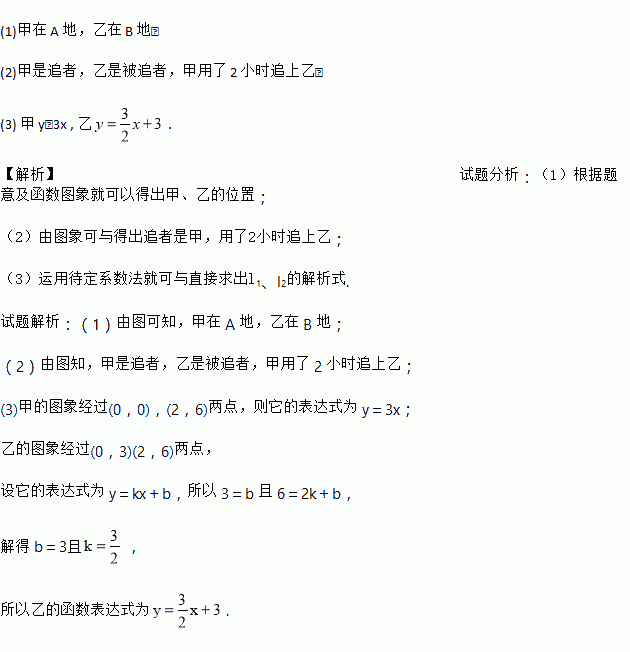 ÒÑÖªAµØÔÚBµØÕýÄÏ·½Ïò 3 ǧÃ×´¦£¬¼×¡¢ÒÒÁ½ÈË·Ö±ð´ÓÁ½µØÏòÕý±±·½ÏòÔÈËÙÖ±ÐУ¬ËûÃÇÓëAµØµÄ¾àÀëS (ǧÃ×)ÓëËùÐÐʱ¼ät (ʱ)Ö®¼äµÄ¹ØÏµÈçͼ£¬Æäl2±íʾ¼×Ô˶¯ µÄ¹ý³Ì,l1±íʾÒÒÔ˶¯µÄ¹ý³Ì£¬¸ù¾ÝͼÏ󻨴ð£º