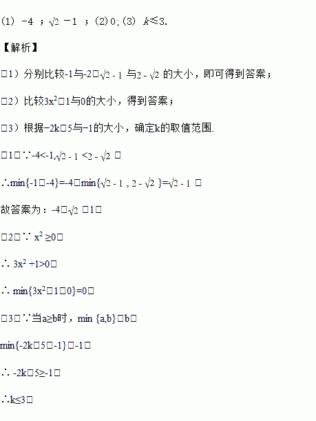 (3)已知min{-2k +5,-1}=-l,求k的取值范围.